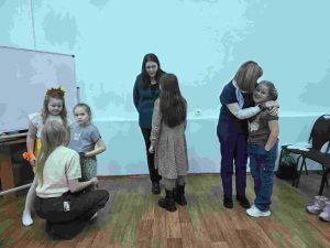 При входе в зал всех мам- участниц мероприятия ждал сюрприз, в рамках краевой акции «Три П:Понимаем. Принимаем. Помогаем» дети с особенностями в развитии писали пожелания на цветках своими мамам и создавали образ своей мамы, одетой в «цветочную» юбку.