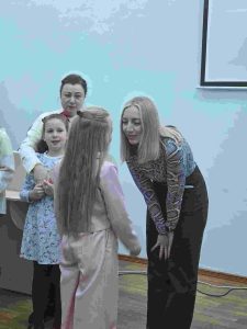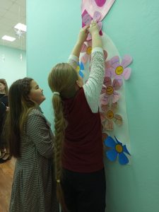 При входе в зал всех мам- участниц мероприятия ждал сюрприз, в рамках краевой акции «Три П:Понимаем. Принимаем. Помогаем» дети с особенностями в развитии писали пожелания на цветках своими мамам и создавали образ своей мамы, одетой в «цветочную» юбку.