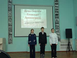 Ребята читали произведения о тяжёлых буднях жителей Ленинграда, об опаленном войной и блокадой детстве, о библиотеках, которые несмотря не бомбежки и летающие снаряды, продолжали работать для населения города,и, конечно же, о праздновании дня снятия полной блокады города, и раздающихся залпах Ленинградского салюта. Итогом мероприятия стала минута молчания под метроном, как дань памяти людям, благодаря которым в эти дни над Санкт Петербургом и нашей Малой Родиной мирное небо над головой, благодаря которым мы живём на этой земле!