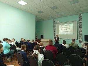 После проведения литературной гостиной обучающиеся студии «Шанс» (педагог-Г.С.Мусатова) со своими уже прочтенными ранее произведениями стали участниками ещё одного мероприятия, приуроченного этой памятной дате, но уже на другой площадке-окружном Доме культуры «Металлург».