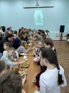 После театрализованного представления всех ждал вкусный чай с блинами, вареньем, джемом, медом и сгущённым молоком, а по окончании праздника каждый ушел со сладким призом и буклетом с рецептами русских блинов и названиями дней Масленичной недели!