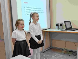 Второе место заслуженно заняли Гарькина Ксения и Чинин Арсений, которые разработали и воплотили в жизнь первоклассников МБОУ «ССШ №2» проект «Физминутка «Йога».