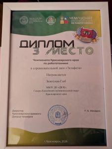 С 31 марта по 04 апреля в Красноярском краевом Дворце пионеров проходил Чемпионат Красноярского края по робототехнике 2026. Чемпионат является отборочным этапом всероссийских конкурсных мероприятий в области робототехники. В этом году в 19 видах состязаний приняли участие 300 школьников края от 7 до 18 лет. Команда Детско-юношеского центра «Техноград», представлявшая Северо-Енисейский округ, приложила массу усилий в захватывающей борьбе с многочисленными и достойными соперниками из региона в категории «Эстафета». Нашим ребятам Кирееву Александру и Золотухину Глебу удалось вырваться в тройку лидеров. Поздравляем команду и ее педагога Зукол Елену Валерьевну с успешным выступлением на чемпионате и надеемся на новые достижения будущих инженеров.